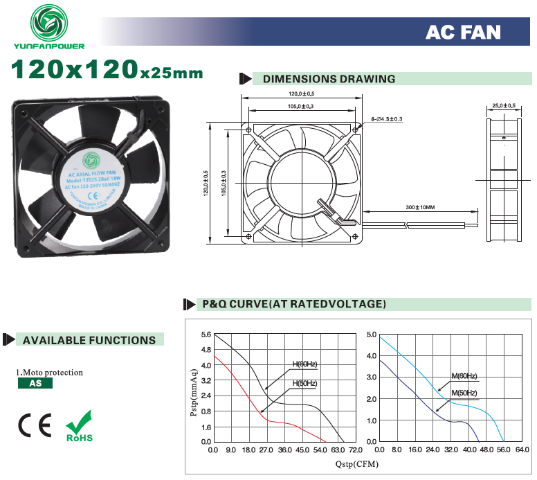 | YFA12025S2M | Manga | 220 | 200-240 | 50/60 | 0,08/0,07 | 1800/2300 | 1,27/1,58 | 3,8/4,9 | 31/36 |
