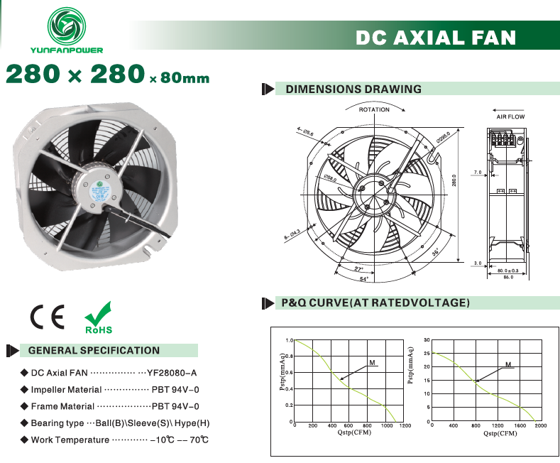 O ventilador CC é alimentado por tensão CC, sempre 5 V, 12 V, 24 V, 48 V, 60 V e 72 V. O ventilador CA é alimentado por tensão CA, sempre 110 V, 220 V e 380 V.
