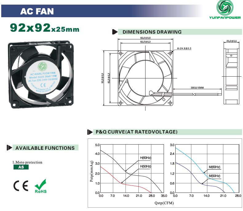 | YFA9225S1H | 50/60 | 0,12/0,11 | 2300/2800 | 0,79/0,96 | 2,7/4,4 | 34/40 | ||