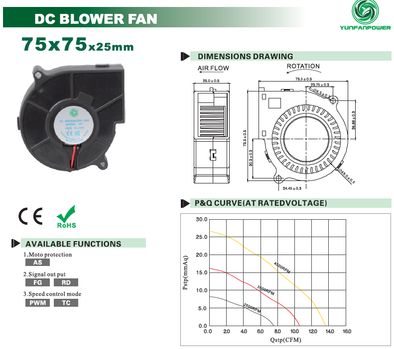 Ventilador soprador 7525, ventilador soprador DC 75x25mm