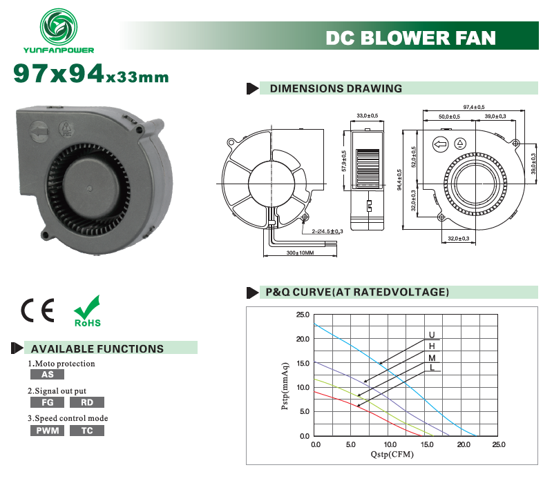 Ventilador 9733, tamanho do ventilador 97x33mm